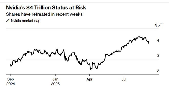 英伟达“4万亿好意思元俱乐部”地位承压——近几周股价出现显耀回撤