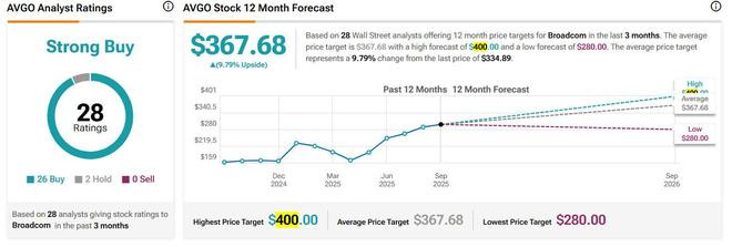 在华尔街,鉴于博通以太网交换机芯片以及AIASIC芯片需求捏续狂飙式增长,华尔街金融大鳄们遍及看涨博通股价远景,看好博通继续献技股价屡改进高之势,因此在博通公布功绩之后遍及大幅上调关于该公司异日12个月的地点股价,Susquehanna、Bernstein、KeyBanc以及巴克莱关于博通的地点股价还是大幅上调至400好意思元。律例周五好意思股收盘,博通收涨近10%至334.89好意思元。